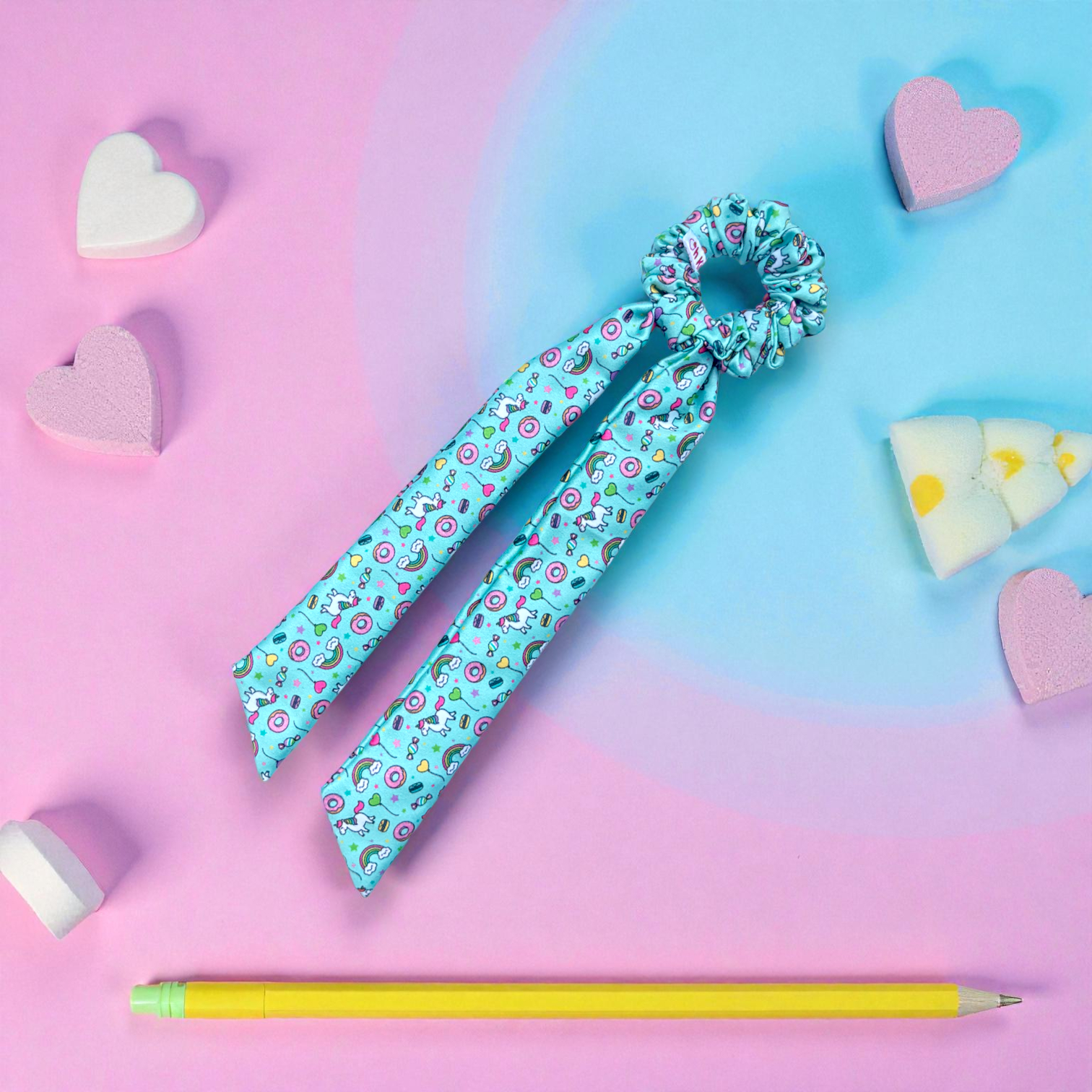 Aqua Petal doesn’t just stop at being breathtakingly beautiful; its premium design ensures it stands out as a functional and comfortable accessory. The long-tailed design offers versatility, allowing you to style it in countless ways—whether wrapping it around a ponytail or tying it around your wrist as an accessory. The floral mint-blue fabric is carefully crafted for durability while staying gentle on your hair, minimizing breakage and snagging.