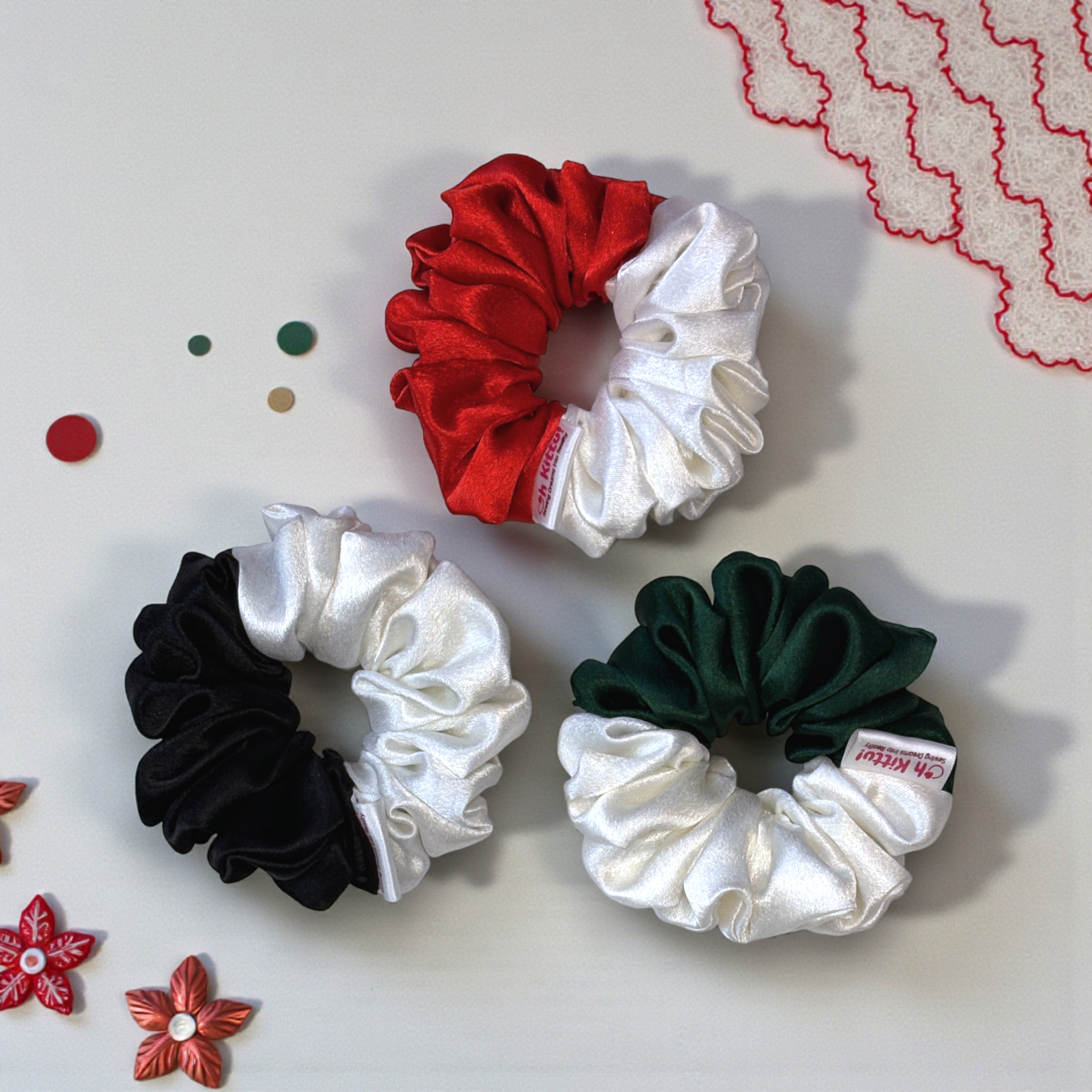 Looking for the perfect way to add a touch of holiday magic to your everyday style? Our Festive Satin Scrunchie Set is designed to do just that! This thoughtfully curated collection features a vibrant color trio of scarlet red, emerald green, classic black, and soft white, capturing the essence of the winter season. More than just accessories, these scrunchies are a delightful way to express your festive spirit while keeping your hair healthy and stylish.