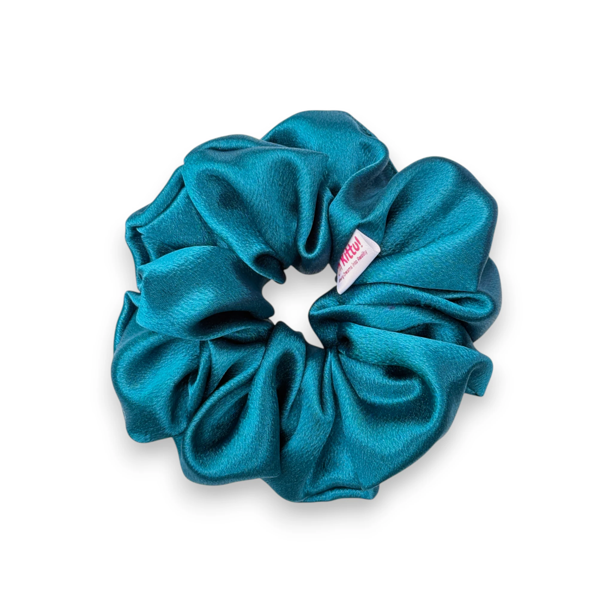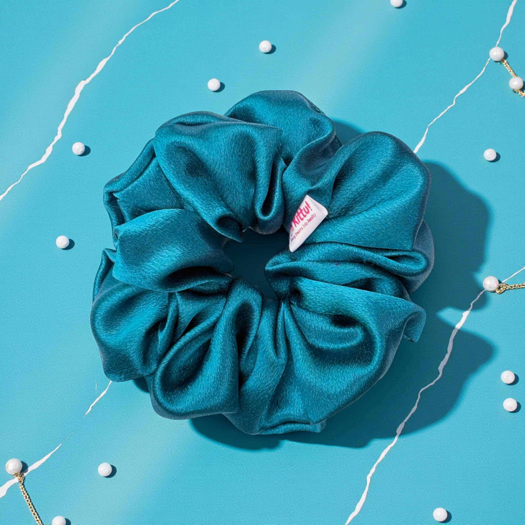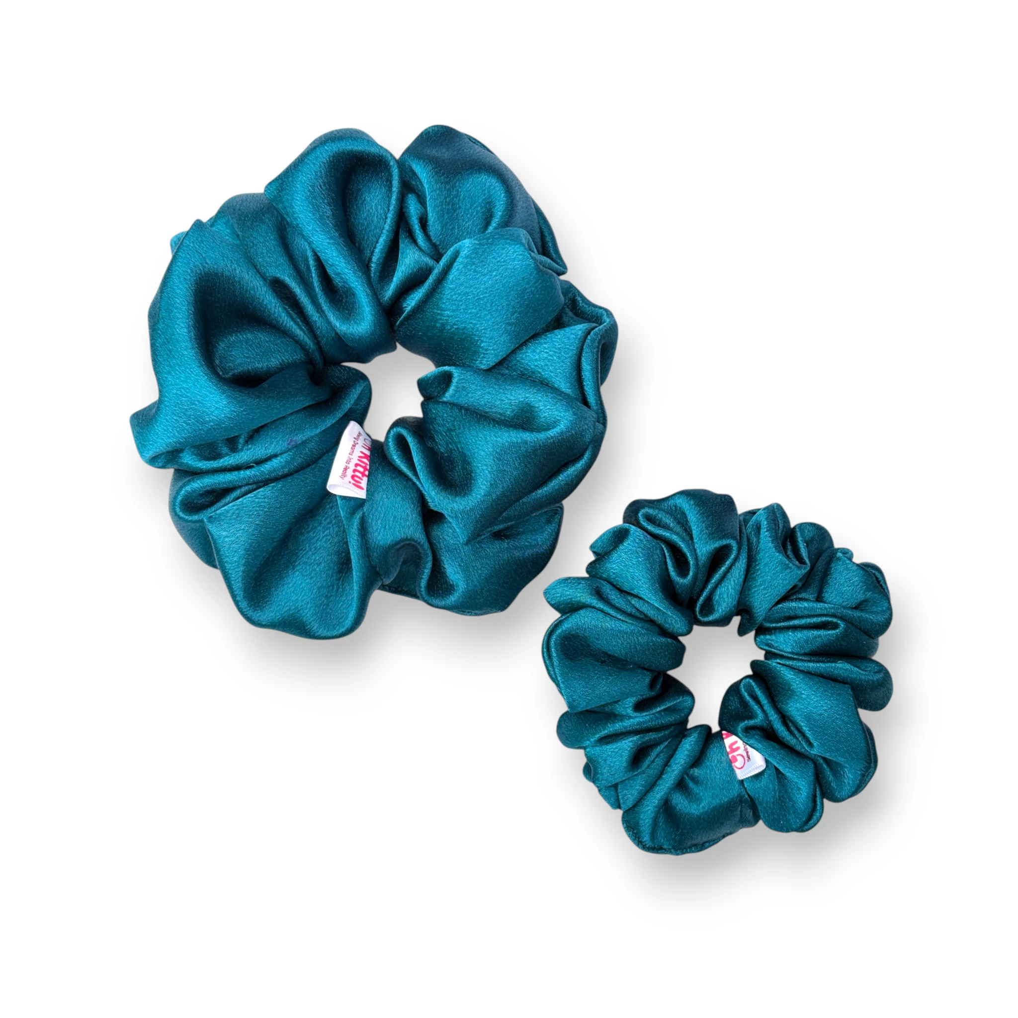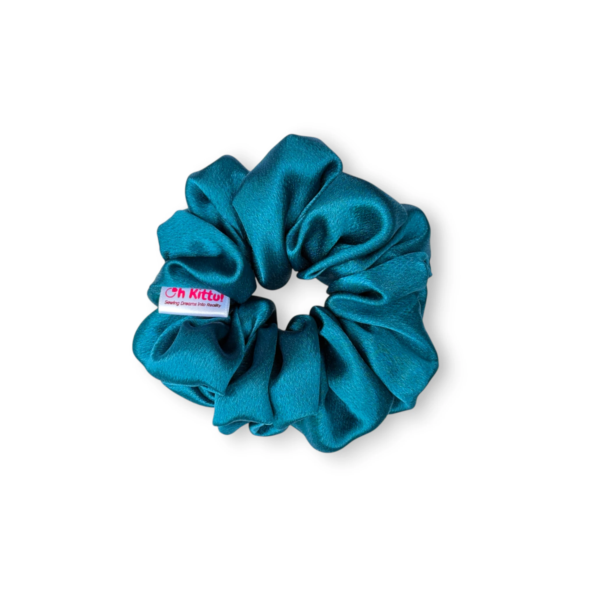 • Vibrant Peacock Blue Tone: This scrunchie features a striking peacock-blue satin that adds an elegant and eye-catching accent to any hairstyle.