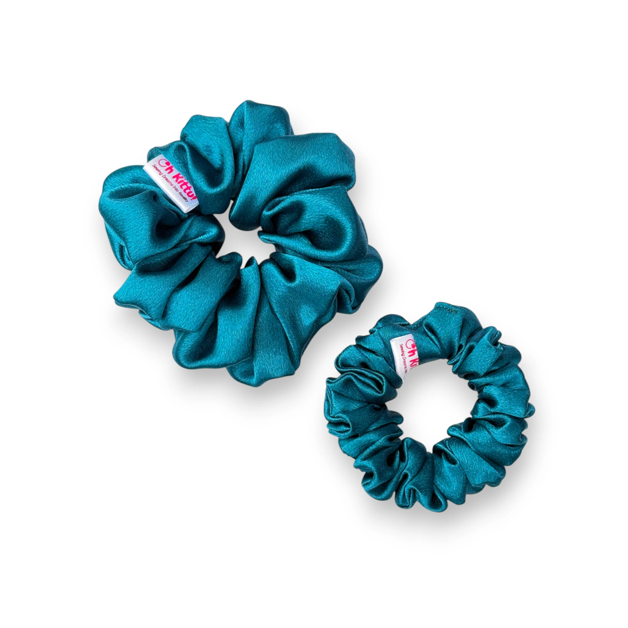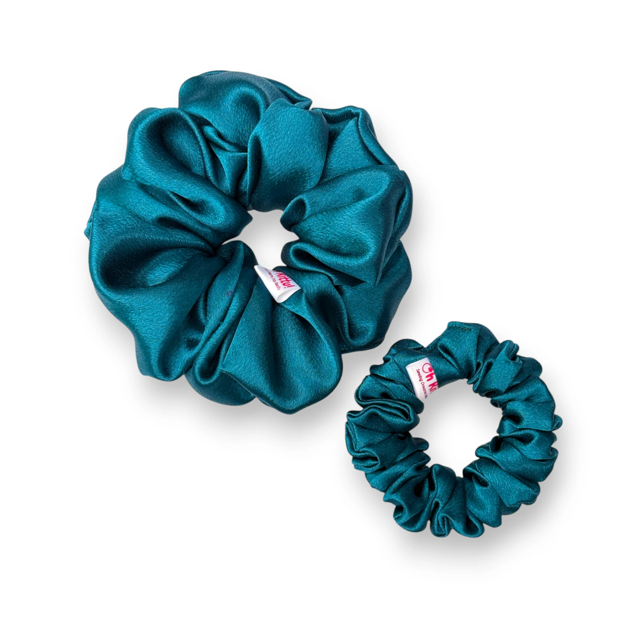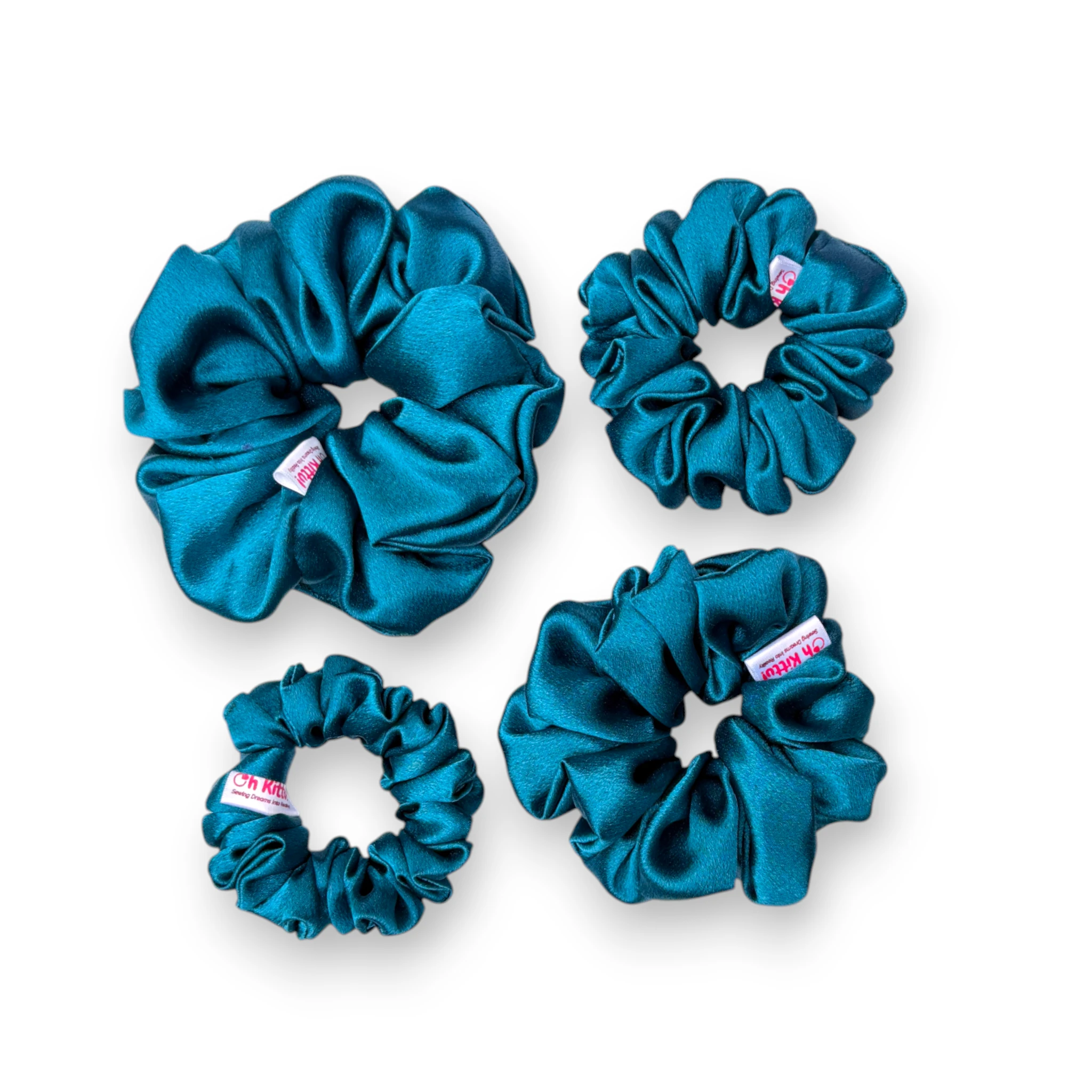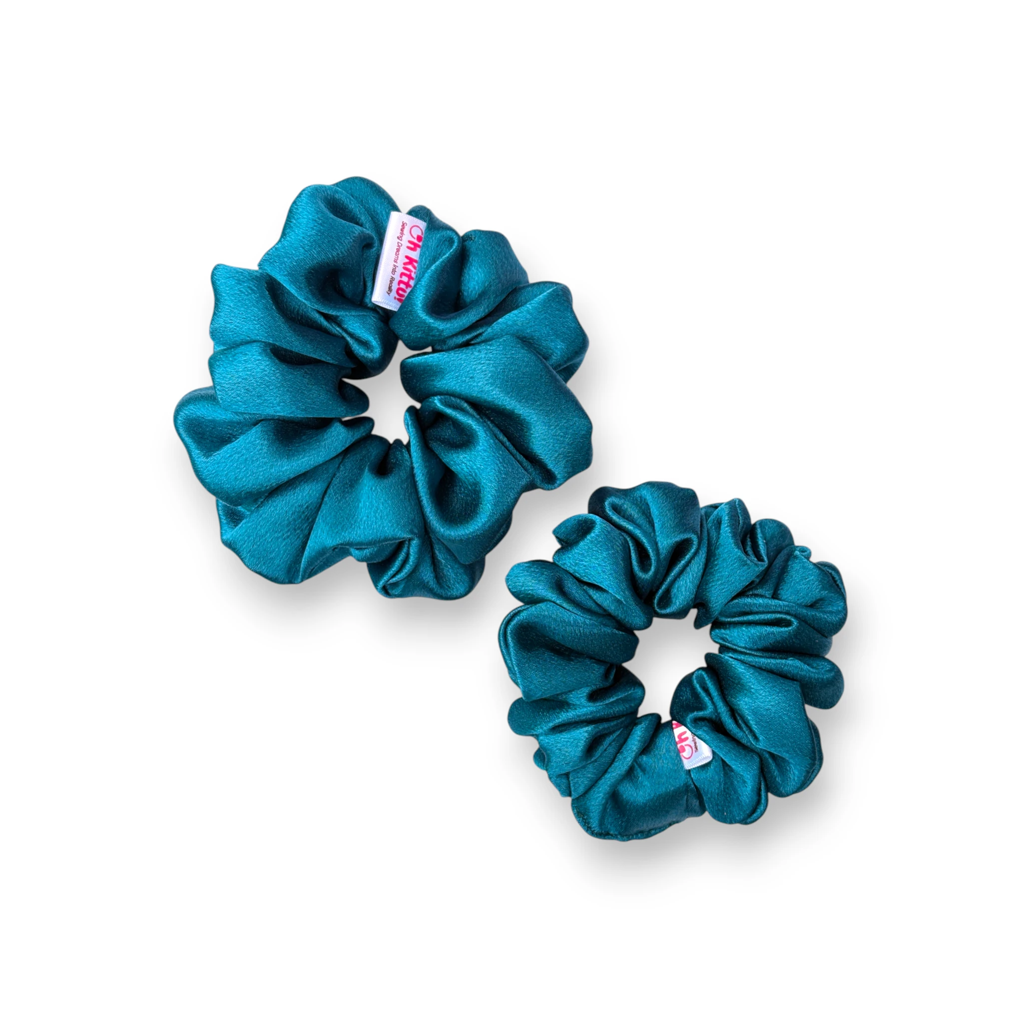 • Vibrant Peacock Blue Tone: This scrunchie features a striking peacock-blue satin that adds an elegant and eye-catching accent to any hairstyle.