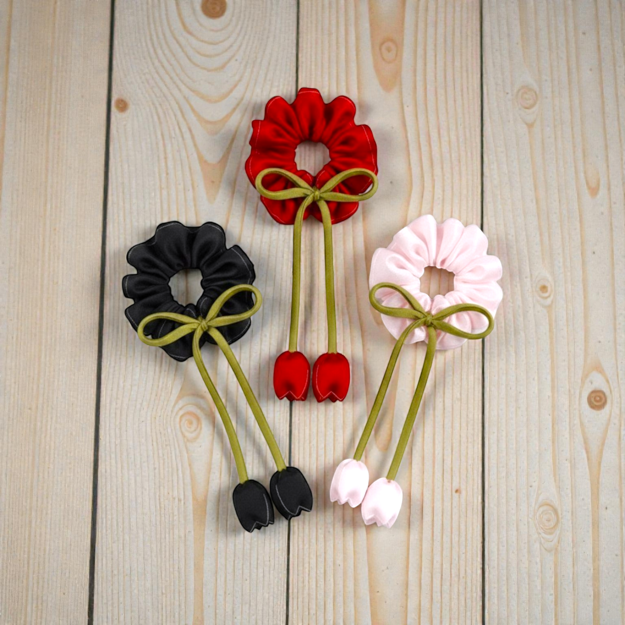 Made with resilient yet gentle fabric, the Tulip Scrunchies are designed to keep your hair secure without discomfort. They’re highly durable and built to maintain their elasticity after repeated use, making them a long-lasting addition to your accessory collection. Toss them in your bag, wear them to work, or style your hair on the go—these scrunchies are ready to meet your daily needs with ease.